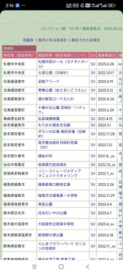 但在搜索的过程中,发现了一个比较有意思的网站,里面对日本境内的花时计进行了编集,包括现存的花时计,室内的花时计以及已被撤去的花时计。
